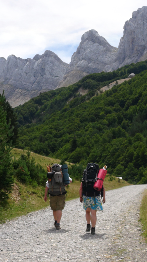 Leaving the safety of our two guides behind us, we (mum, Daniela and myself) shouldering our heavy packs (weighed down with un-necessarily vast amounts of food) set off along the winding road into the mountains. To our left scree and lichen spattered rock, rose sharply, while to our right a forest of pine and beach shaded the banks of the Rio Veral and the sun hot summer blazed down on us.